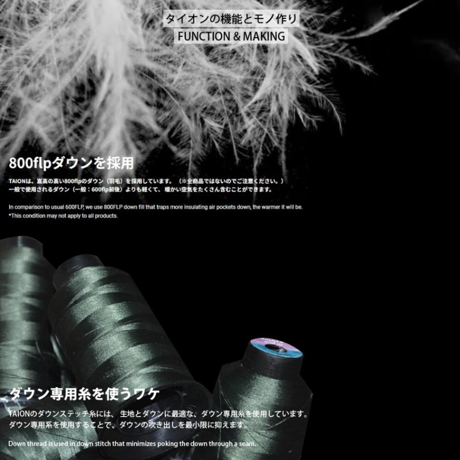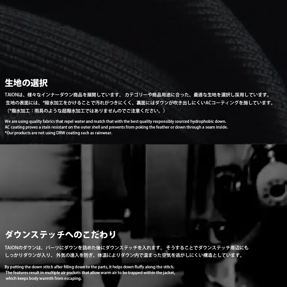 2種類の素材感を楽しめる!リバーシブルダウンマフラー 毎年完売必至のMOUNTAIN LINEのリバーシブルダウンマフラーです。 表側にナイロン+ダウン、裏側にはボア素材を使用しているので、非常に暖く冬場の寒い時期には欠かせないアイテムです。 ダウンベストやダウンジャケットと合わせていただくこともお勧めします。 【MOUNTAIN LINE】 MOUNTAIN LINEはタウンユースをはじめ、キャンプなどアウトドアシーンで着用できるインナーダウンを取り揃えたラインです。 【TAIONのダウン品質について】 TAIONは、嵩高の高い800flpのダウン(羽毛)を採用しています。 一般で使用されるダウン(一般:600flp前後)よりも軽くて、 暖かい空気をたくさん含むことができます。 ※一部800flpではないアイテムもあります。予めご了承ください。 ※ダウンは天然由来の素材であるため、稀に濃い色の羽が混入することがあり、表面に透けて見える場合がございます。こちらは不良品ではございません。返品や交換につきましてはご対応いたしかねますので、あらかじめご了承ください。(解消方法:少し目立つ箇所がございましたら両手で少し揉んで頂くと目立たなくなります。) |