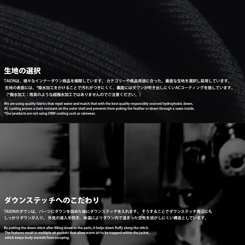 「TAION」のブランド名の由来は、TAION=体温。「クオリティーに対しての圧倒的コストパフォーマンスによる価値の追求 」をスローガンとし、高品質で高機能なインナーダウンを幅広く展開しています。 色やサイズの豊富なバリエーションもTAIONの特徴です。
