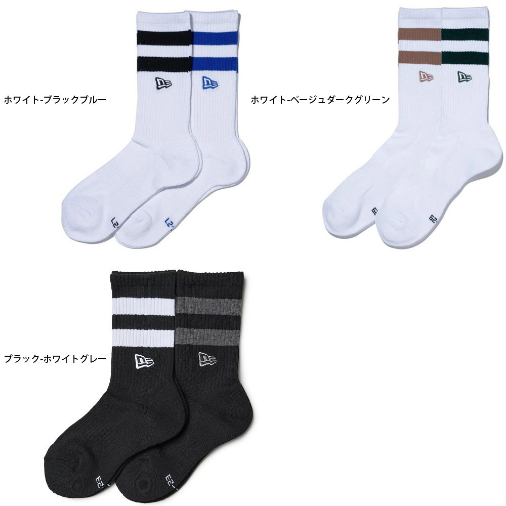 【モデル名】ソックス クルー 2ペア ライン フラッグロゴ エンブロイダリー ブラック/ブルー SOCKS CREW 2P EMB WHI BLU BLK 25J、ソックス クルー 2ペア ライン フラッグロゴ エンブロイダリー ベージュ/ダークグリーン SOCKS CREW 2P EMB WHI GRN BEI 25J