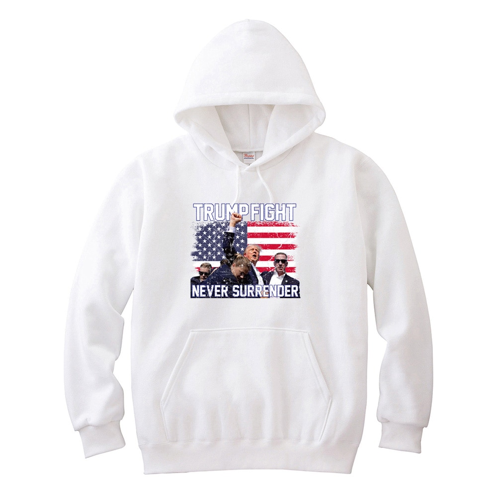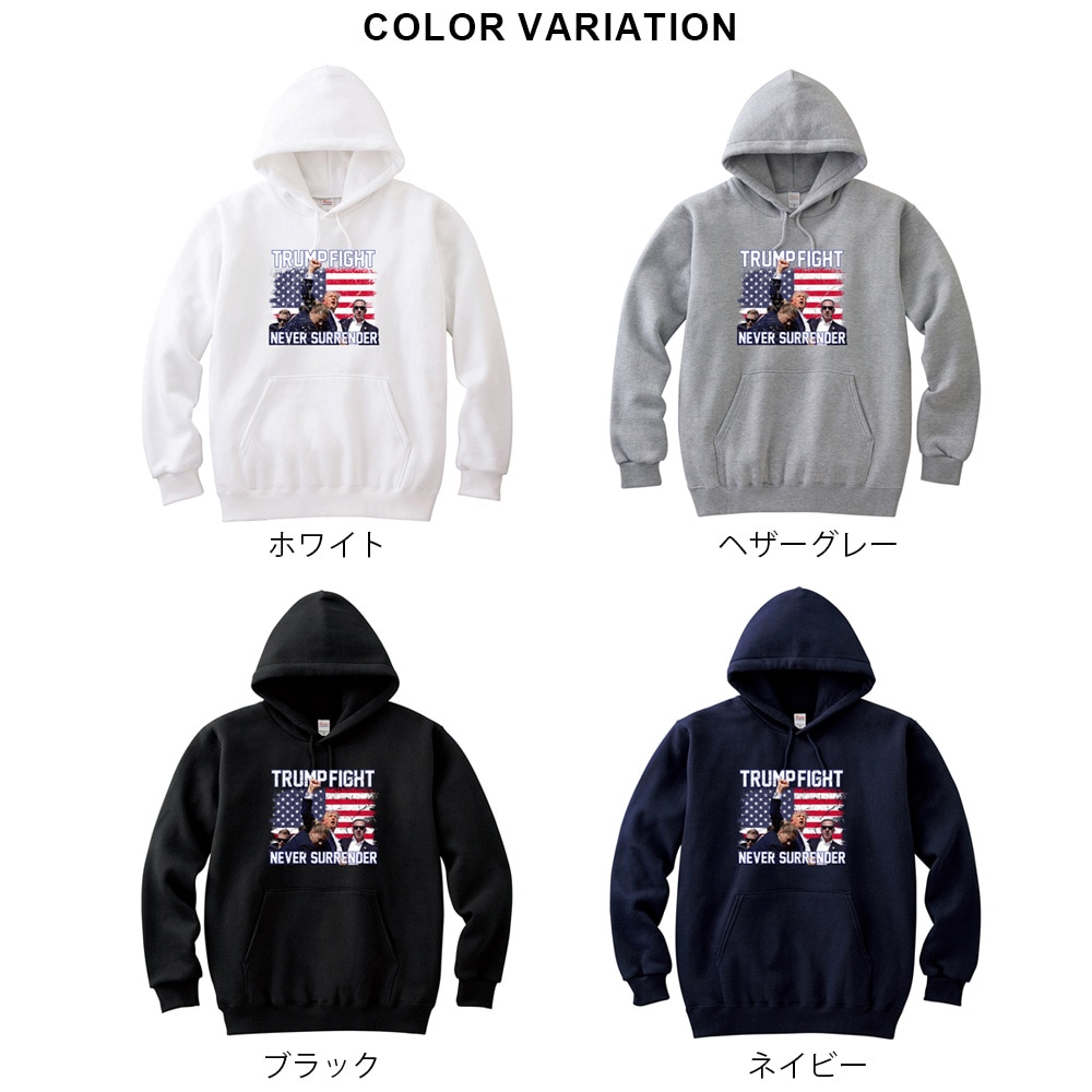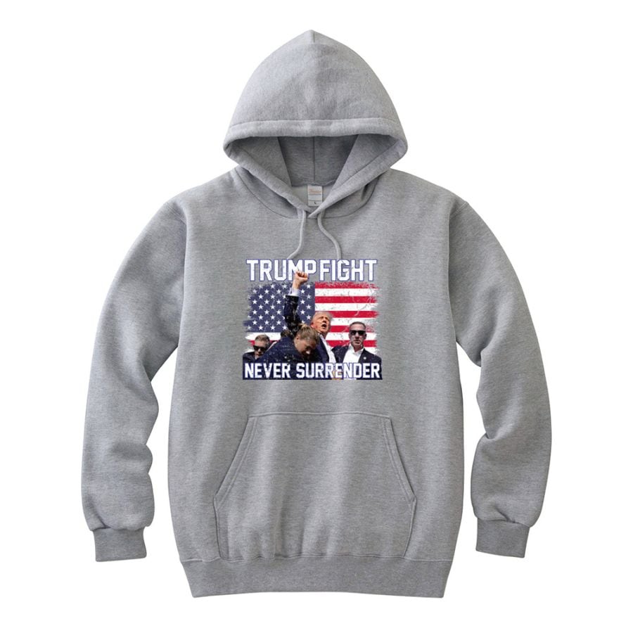 ドナルド・トランプ パーカー TRUMP FIGHT NEVER SURRENDER ドナルド トランプ 大統領選挙 暗殺未遂 銃撃 大統領候補 トランプ米国大統領 選挙運動 ジョー バイデン バイデン大統領 共和党 民主党 アメリカ USA メッセージ パーカ メンズ レディース 大きいサイズ 父の日