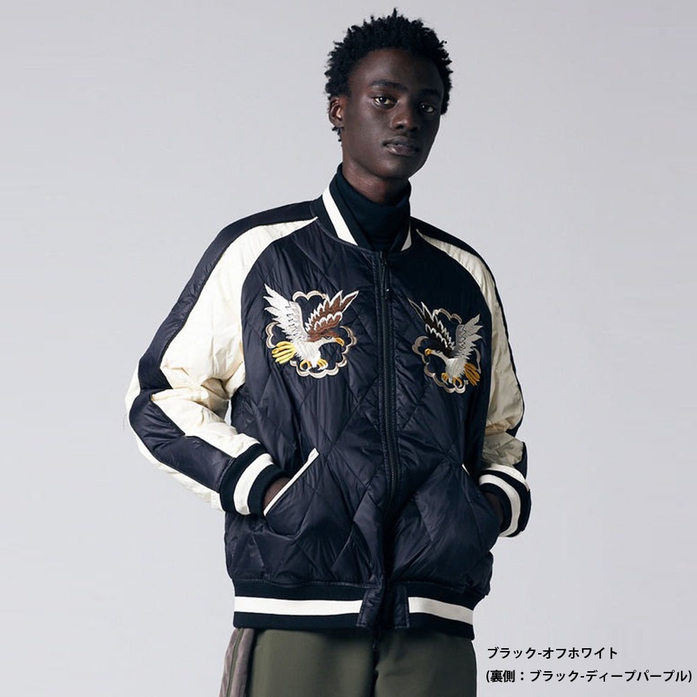 タイオン TAION ジャパンスペシャル リバーシブル スカジャン ダウンジャケット TAION-JK04JS-N1【メンズ L XL 大きいサイズ アウター ジャケット スーベニアジャケット ライトダウン 暖かい 軽量 防寒 刺繍 龍 鷹 富士 ブラック 黒 ネイビー アメカジ ビンテージ風】
