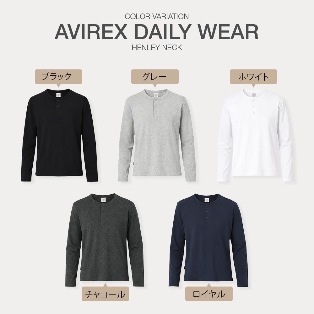 ![]() AVIREX 正規販売店 当店はアビレックス AVIREX の正規販売店です。 正規取扱店ならではの安心感とともに、信頼できる品質をお届けします。 アビレックス定番 デイリーウェア ヘンリーネック長袖Tシャツ 毎日着ることを前提に作られた、アビレックス定番「デイリーウェア」シリーズ。 本商品は、シンプルさと程よいアクセントを兼ね備えたヘンリーネック長袖Tシャツの単品販売ページです。 ボタン付きのヘンリーネック仕様により、無地Tシャツとは一味違う表情を演出。 1枚で着てもサマになり、インナーとしても使いやすい万能なデザインです。 生地にはテンションの強いライクラ糸を使用したリブ編み素材を採用。 体にしっかりフィットしながらも、快適なストレッチ感があり、長時間の着用でもストレスを感じにくい着心地です。 ヘビーローテーションでも型崩れしにくく、デイリーウェアの名にふさわしいタフさを備えています。 カラーはホワイト、ブラック、グレー、チャコール、ロイヤル(ネイビー系)を展開。 癖のないカラーとスタンダードなシルエットで、年齢やスタイルを選ばず着用できます。 素材・生地 繊維強度に優れた上質な綿を使用したコーマ糸と、伸縮性に優れたスパンデックスを組み合わせたリブ素材。 柔らかな肌触りと、しっかりとした着心地を両立しています。 リブ編み仕様 1mm間隔で横糸にスパンデックスを入れた2×2リブ編み製法を採用。 肉厚でフィット感があり、身体をやさしくサポートします。 抗菌防臭加工 生地に抗菌防臭加工を施し、汗のニオイや部屋干し臭を軽減。 ※すべての菌や臭いを除去・抑制するものではありません。 シンプルながら着こなしに差がつくヘンリーネック。 長く使える定番アイテムとして、ぜひワードローブに加えてください。 商品詳細 【特徴】体にしっかりとフィットする快適な適度な伸縮性、耐久性に優れたリブ素材 【素材】綿95%、ポリウレタン5% 【ブランド名】アビレックス AVIREX 【モデル名】DAILY WEAR RIB L/S HENLEY NECK T-SHIRT リブ 長袖 ヘンリーネック Tシャツ デイリーウェア 【カラーバリエーション】ブラック、グレー、ホワイト、チャコール、ロイヤル 【メーカー品番/JANコード】7834930020、7835930014、6153482 【生産国】ベトナム製/Made in Vietnam 【対象】大人・メンズ・男性用・レディース・女性用 【商品分類】Tシャツ、長袖Tシャツ、ロンT、ロングスリーブTシャツ、ロングスリーブ、ヘンリーネックTシャツ、カットソー、インナー、アンダーウェア、アンダーウエア、トップス、Tシャツ、長袖、ティーシャツ、肌着 【シーン】トップス、カジュアル、ビジネス、ミリタリー、ストリート、スポーツ、アウトドア、普段使い、おしゃれ、カッコイイ、運動、通勤、通学、スポーツ、ジム、フィットネス、トレーニング、最強Tシャツ、男の定番、プレゼント、彼氏、ギフト、筋トレ、マッチョ、丈夫、厚手、長持ち、透けない、タイト、伸縮性 |