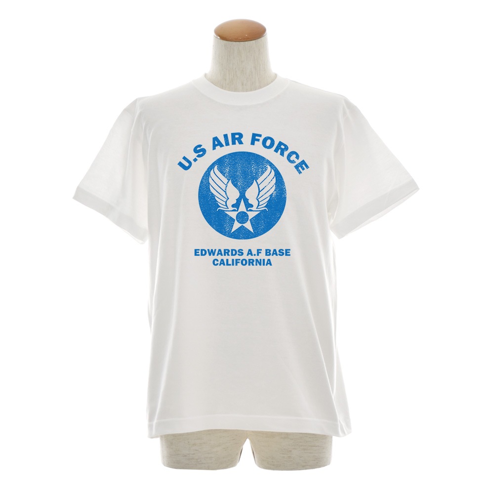 カリフォルニア州のエドワーズ空軍基地のモチーフをヴィンテージ調に「カスレ」プリントした「U.S AIR FORCE Tシャツ」 1850年代にはLevi's(リーバイス)に代表されるジーンズが誕生し1960年代にはヒッピーカルチャーが栄え。現代のアーバンサイクルカルチャーもサンフランシスコが発祥地。