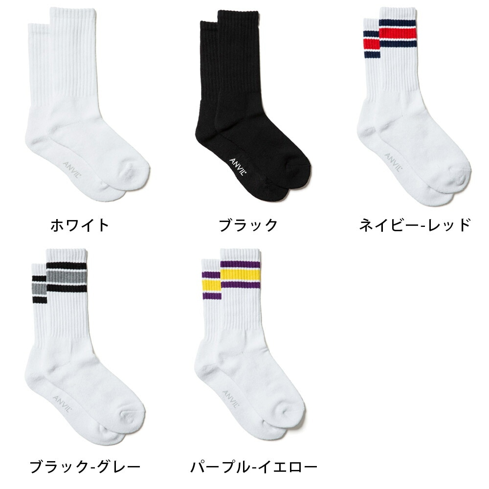 ANVIL アンビル アンヴィル ソックス 靴下 USA コットン クルーソックス USA Cotton Crew Socks AN500【メンズ 男性用 リブソックス 1Pソックス ハイソックス ラインソックス スポーツソックス 無地 ムジ シンプル おしゃれ 綿 くつした 長め アウトドア靴下 25-29cm】
