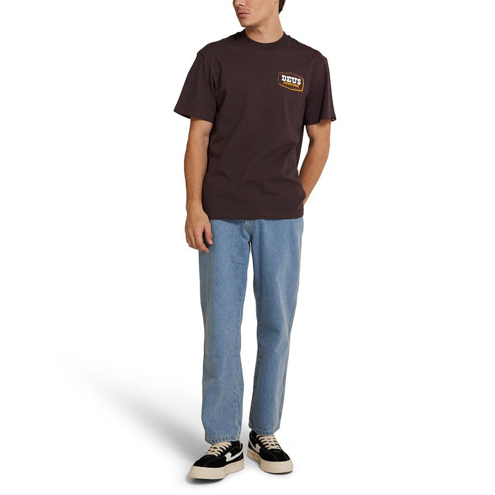 【5%OFFセール】デウス エクス マキナ Deus ex Machina Tシャツ バックルアップ ティ―シャツ BUCKLE UP TEE DMF241545D【メンズ L XL】【ロゴ バックプリント デイリーライン ボックスシルエット サーファー バイカー アメカジ 定番 ブラウン 茶色】